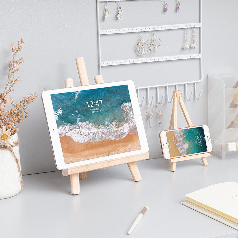 Support universel pliable et ajustable pour téléphones / tablettes en bois façon « Chevalet ».