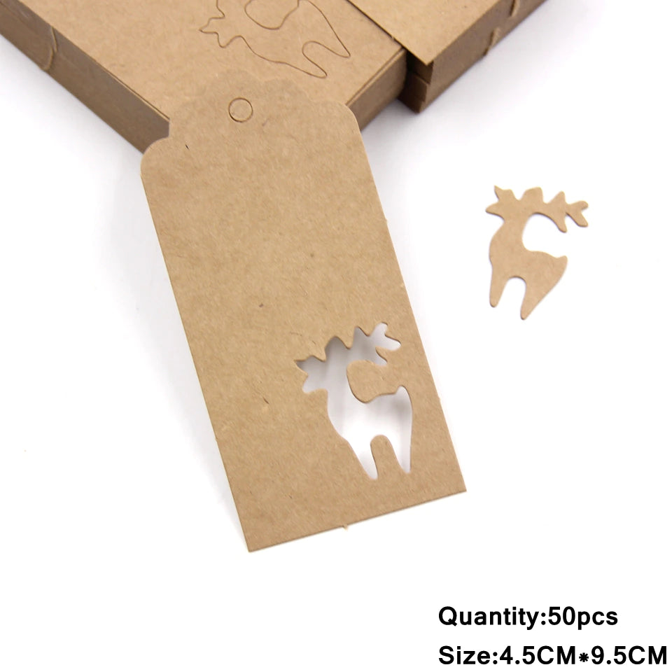 1 lot de 50 étiquettes en papier kraft avec motifs prédécoupés et cordelettes en chanvre assorties pour toutes vos décorations de Noël, table, sapin, cadeau...