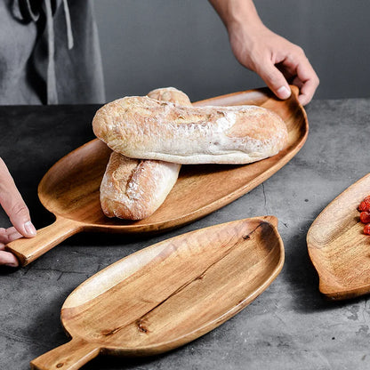 Assiette de style japonais « feuille d'arbre » en bois de qualité supérieure.