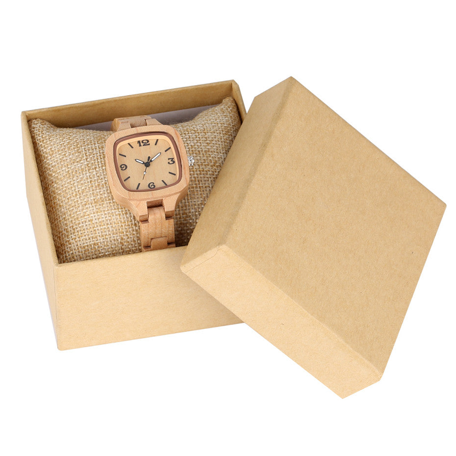 Montre à quartz en bambou naturel pour femme avec coffret.